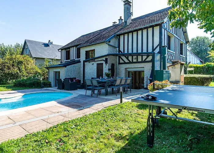 Situated merely 1.3 km from the established Casino Barriere, Villa Des Courses - Piscine Et Jardin Deauville features a terrace with views of the pool.
